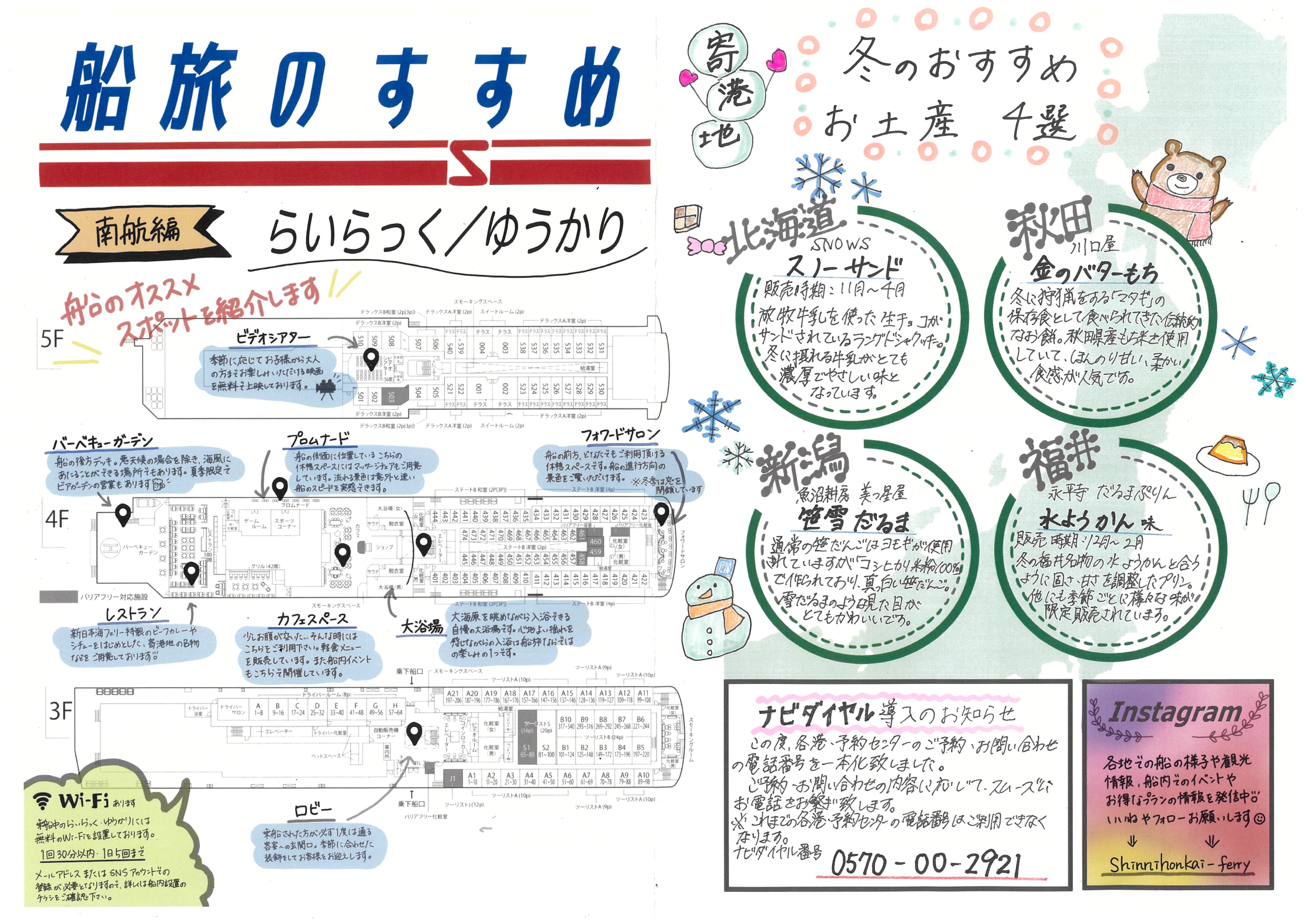 船旅プランとおすすめ情報 2020/1/9 ホーム あなただけのひとときが見つかります 船旅を楽しむためのプランやモデルコースなど船旅に役立つおすすめ情報をご紹介します。 おすすめ情報 パッケージツアー モデルコース デジタルパンフレット おすすめ情報 おすすめ情報 《小樽発着団体ツアー》舞鶴歴史探訪と初詣と冬の天橋立満喫旅4日間 冬の京都・舞鶴大満喫ツアー♪ おすすめ情報 2026年SHKラインカレンダー「明日をつなぐ海路」発売中 ご希望のお客様はお早目にお買い求めください♪ おすすめ情報 AUTHENT PRESS2025.12-2026.2 2025.12.01 - 2026.02.28 当社グループのオーセントホテル小樽より素敵なお知らせです☆ おすすめ情報 《団体ツアー》日本遺産小樽・北前船めぐりと小樽雪あかりの路4日間 2026.02.07 - 【新潟港発着】小樽の歴史を専門家と巡りながら北海道の自然を感じられる団体ツア・・・ 一覧をみる パッケージツアー 個人プラン 9-11月発 舞鶴・敦賀発着!『秋の北海道美食ドライブパック4日間』のご案内 2025.09.01 - 2025.11.30 出発地:舞鶴港、敦賀港 到着地:小樽港、苫小牧東港 紅葉深まる秋の北海道を巡りませんか? 団体プラン 【団体ツアー】添乗員同行!海と絶景を楽しむ秋の京都天橋立と舞鶴満喫旅4日間 - 出発地:小樽港 到着地:舞鶴港 日本三景 天橋立と舞鶴の歴史を感じる4日間のご案内♪ 一覧をみる モデルコース 北海道 道南の函館・松前たっぷりドライブ 出発地:函館・松前 道南の観光名所をおさえた、たっぷり北海道を楽しめるドライブコースです 本州 北東北漫遊ドライブ 出発地:北東北 秋田港を起点に、北東北の文化・自然・温泉を堪能! 一覧をみる デジタルパンフレット 「夢人旅」~ゆめひとたび~ 夢と人、そして旅をつなぐ。船旅にゆたかさと彩りを添えるとびっきりの情報をお届けします。 船内案内紙 各船に設置の船旅案内誌です。寄港地のスタッフおすすめの情報を掲載しております!