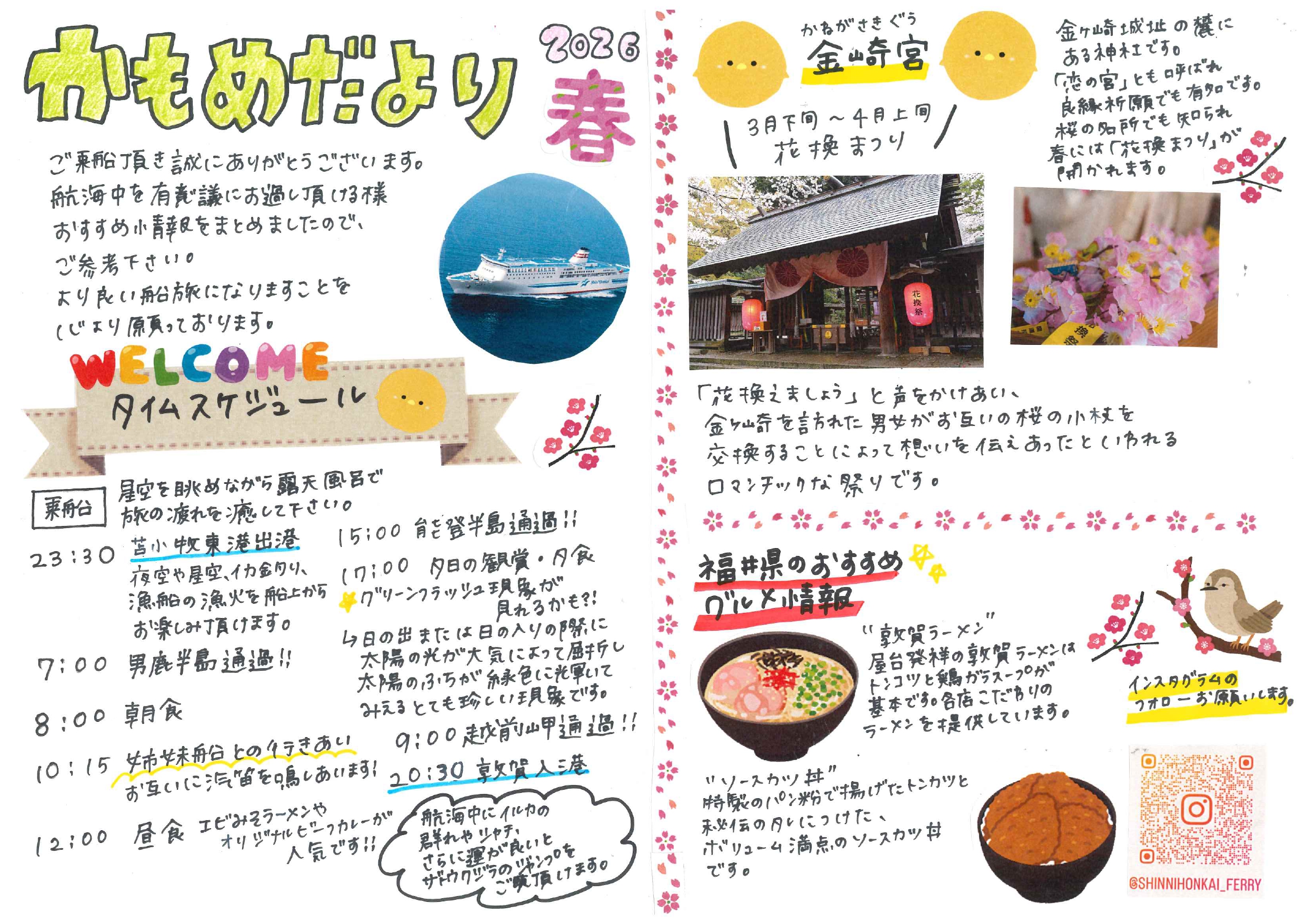 ホーム 船舶 けやき/あかしあ すずらん/すいせん らべんだあ/あざれあ らいらっく/ゆうかり 全ての船舶 ▲ ▼ 船旅案内紙 2020/2/20 敦賀→苫小牧かもめだより 苫小牧東フェリーターミナルより北海道のおすすめスポットをご紹介します♪ 詳細へ 苫小牧→敦賀かもめだより 敦賀フェリーターミナルより福井のおすすめスポットをご紹介します♪ 詳細へ