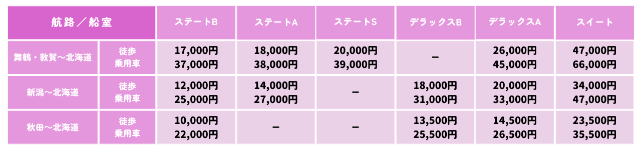 【北海道発~舞鶴・敦賀航路】