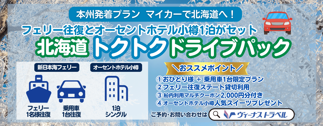 ・乗り慣れた愛車でドライブ旅行♪マイカー往復航送代(5m未満1台)