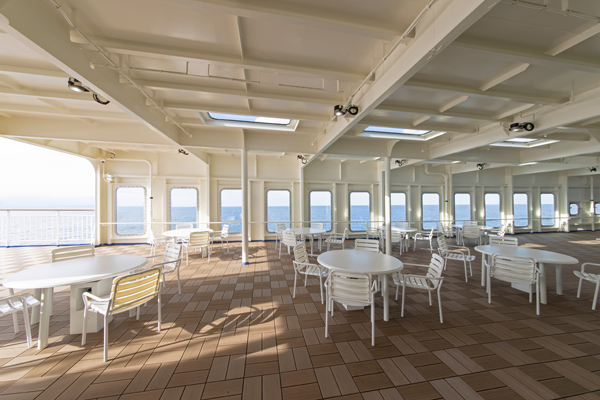 船の後方に位置するオープンデッキです。