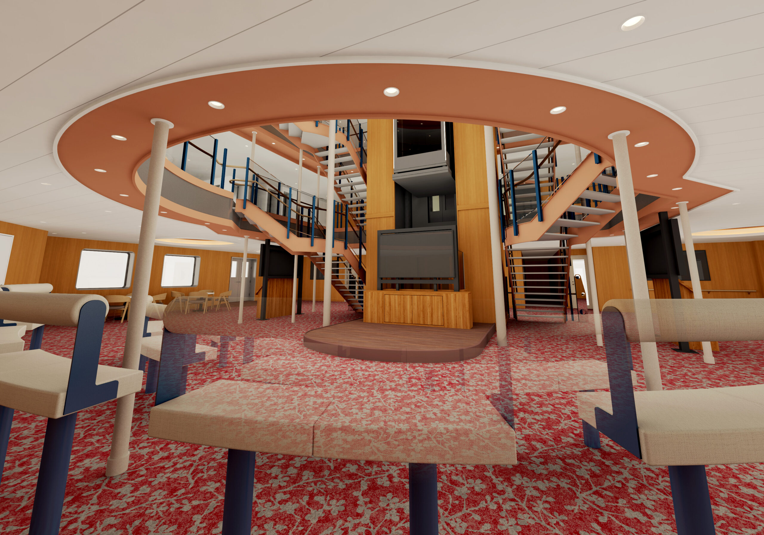 船内は3層吹き抜けのエントランスとシースルーエレベーター、船首部には2層吹き抜けのフォワードサロンを備え、開放的で快適な船旅を演出します。レストランやコース料理を提供するグリルでは海を眺めながらのお食事を楽しむことができ、最上階では日本海の風を肌で感じながらの露天風呂、様々なビジュアルコンテンツを鑑賞することができる多目的ルームが備え付けられています。船室はオーシャンビューの浴室を設けたスイートルームの他、専用テラス付きデラックス、シャワー・トイレが完備されたステート洋室、家族旅行に最適なステート和洋室、ペットと同伴できるウィズペットルームを用意しています。ツーリストクラスもプライベート空間が確保された寝台により快適な船旅を提供します。