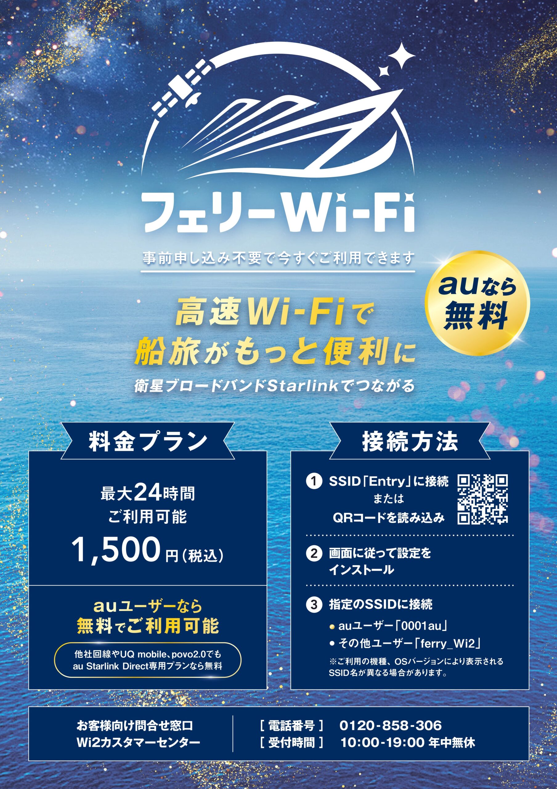 au Starlink フェリーWi-Fiについて詳しくはauホームページ>をご確認ください。